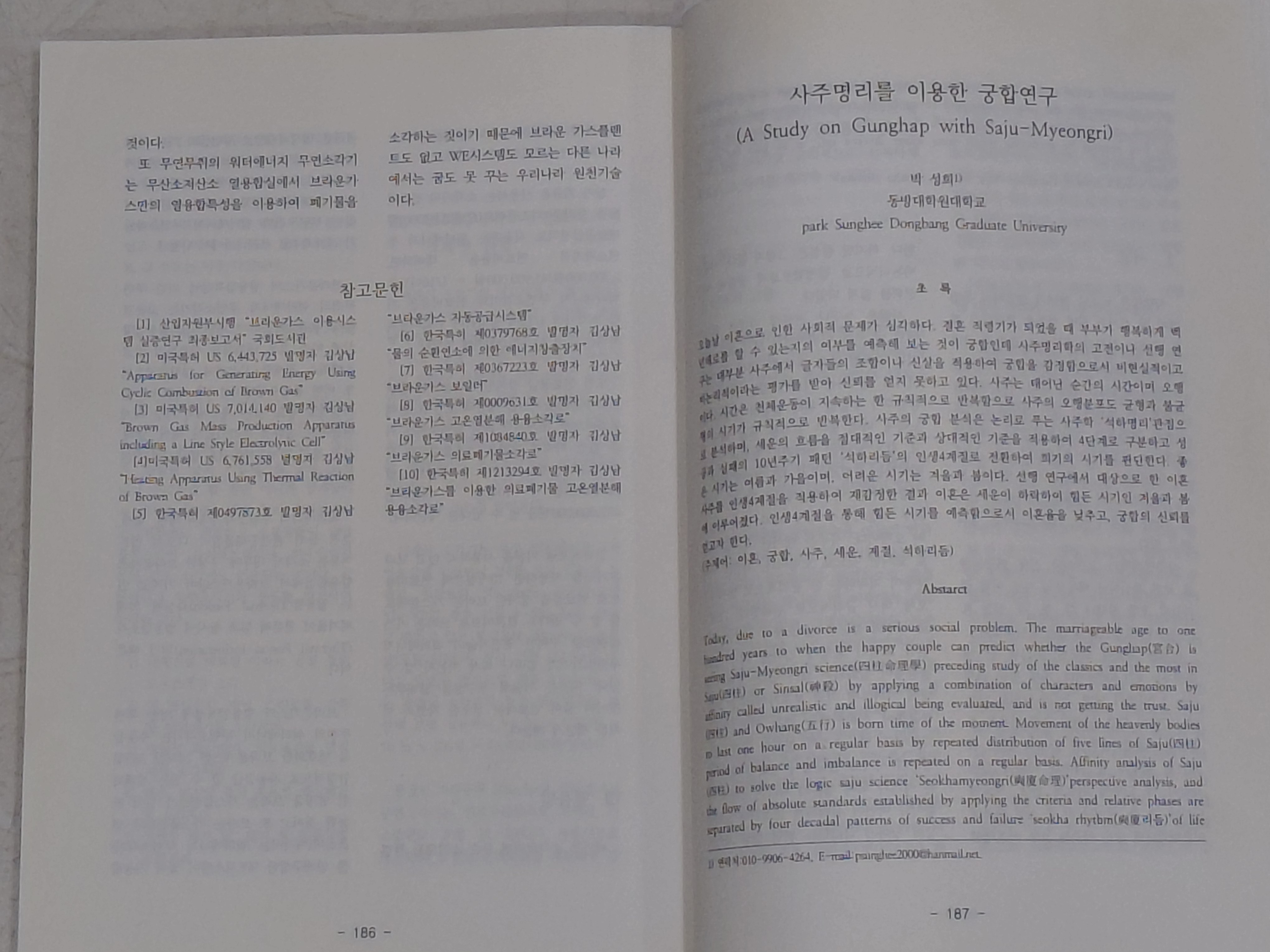 사주명리학을 연구하여 논문으로 발표합니다.